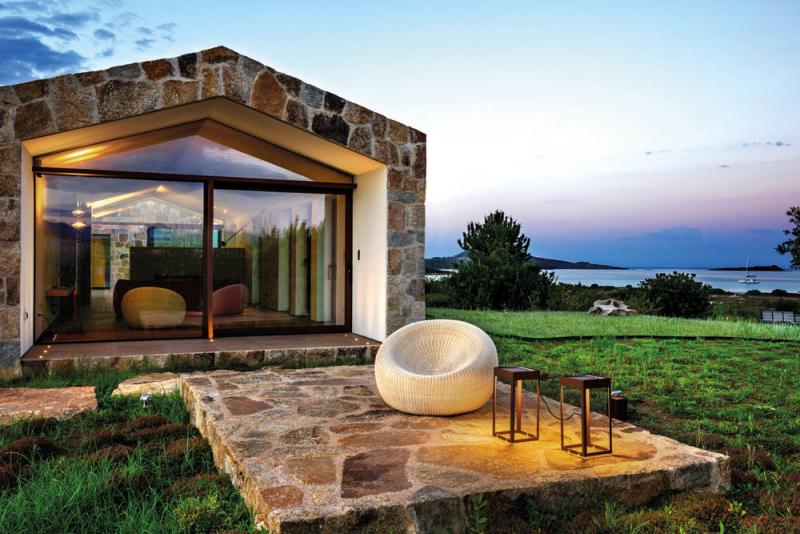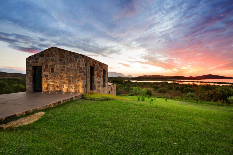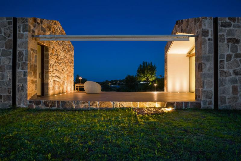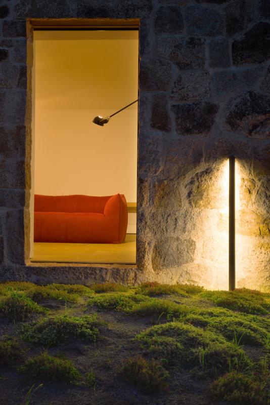 La iluminación en este proyecto, también realizada con luminarias Platek, combina luz exterior y de acento para definir los contornos de la construcción y el entorno natural. Focos cálidos bañan el acceso y la plataforma de entrada, destacando la textura de piedra y creando una transición armoniosa entre el espacio interior y exterior. La luz directa en el suelo enfatiza el volumen de la estructura, mientras que las luces en el interior del edificio emiten un resplandor suave que se proyecta hacia el exterior, integrando la edificación con el paisaje y resaltando su diseño minimalista.
